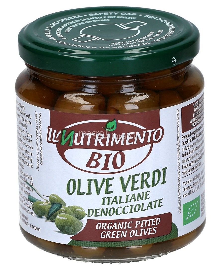 OLVVDSL0028 ILNUTRIMENTO Glutensiz Organik Çekirdeksiz Salamura Yeşil Zeytin Vegan 280gr.