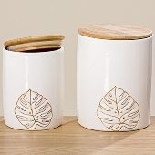 BOLT9822141 KAVANOZ H18xD14cm YAPRAK BEYAZ PORSELEN
